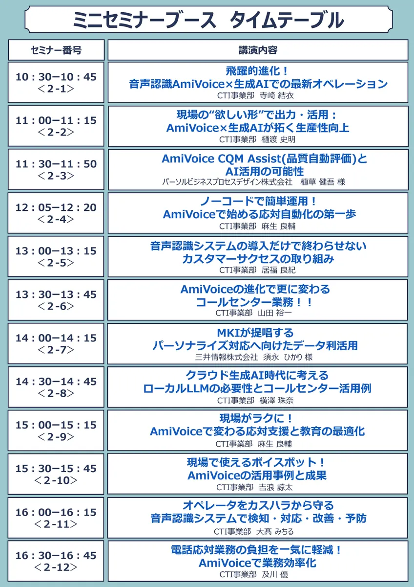 <2B-24>ブースにて、各種展示ほかミニセミナーを開催しております。