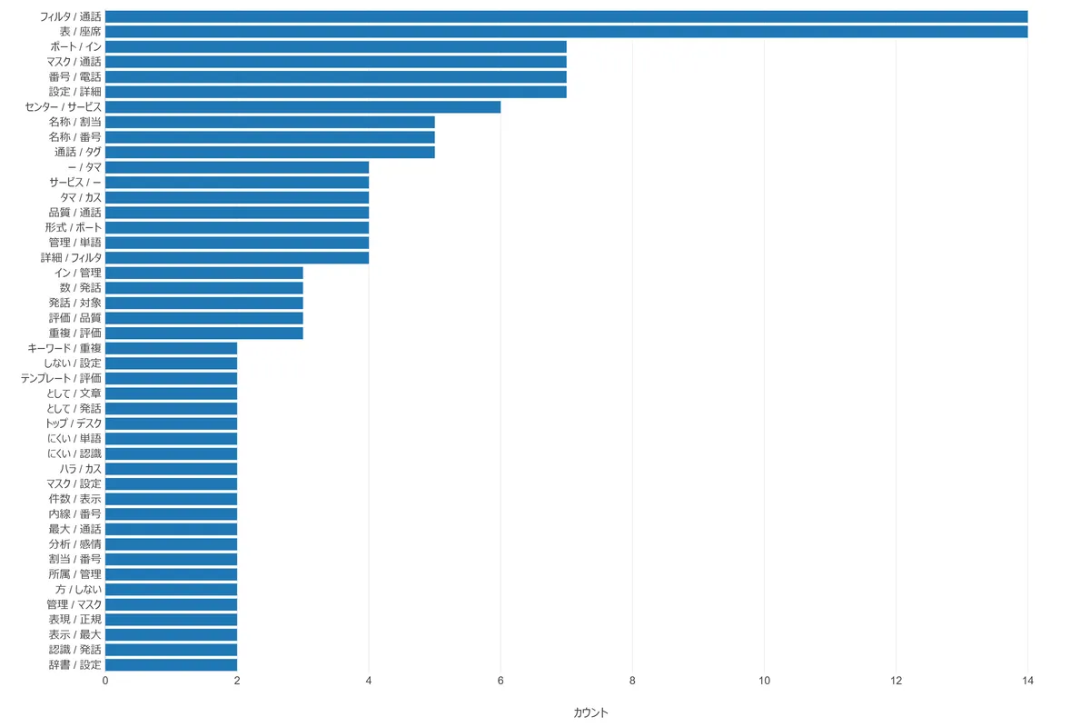 直近の検索ワードから導き出されたWord Pairs(言語学において特定の文脈や意味を共有する二つの単語のセット)はこのような感じでした、、!